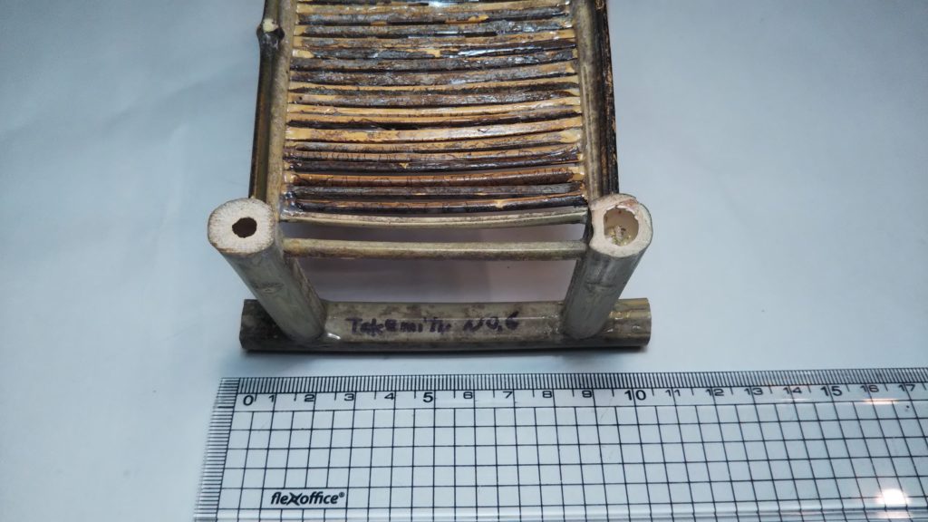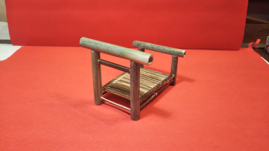 スマホなど小物がおける竹細工を考えたのですが、普通だと面白くないので 何か神がかったもので出来ないかと思案して、まず鳥居形式の小物置きをデザインしてみました。
